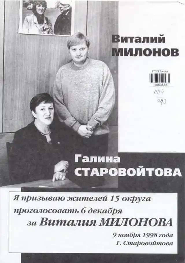 Правозащитница Галина Старовойтова и её помощник Виталий Милонов, 1998 год.
