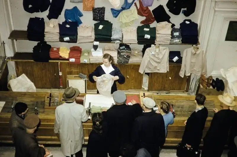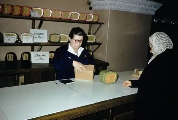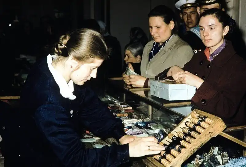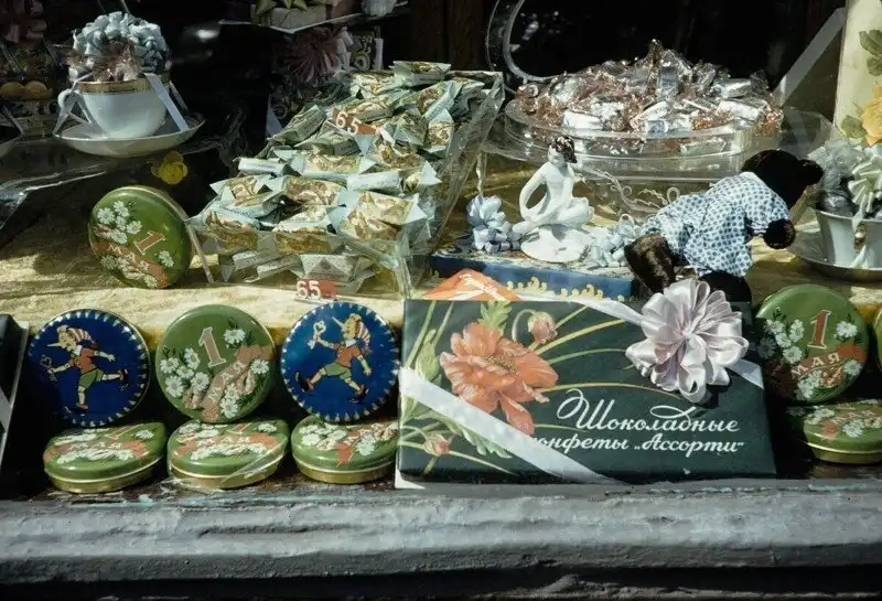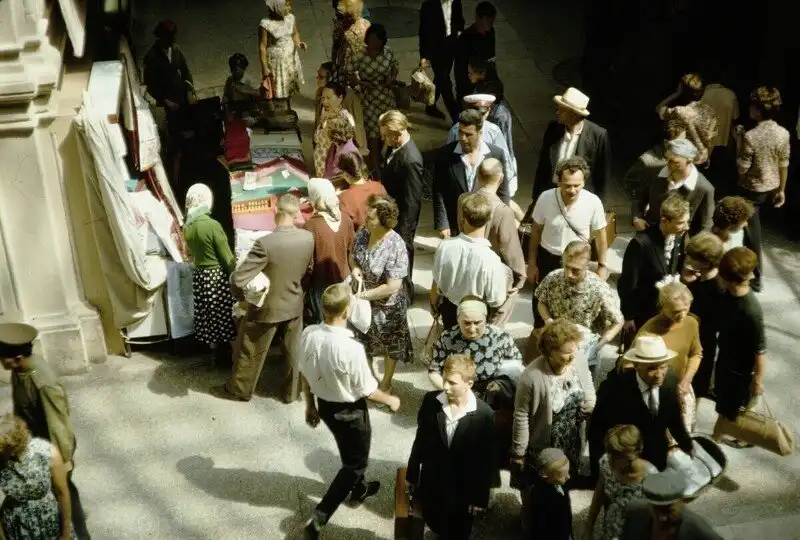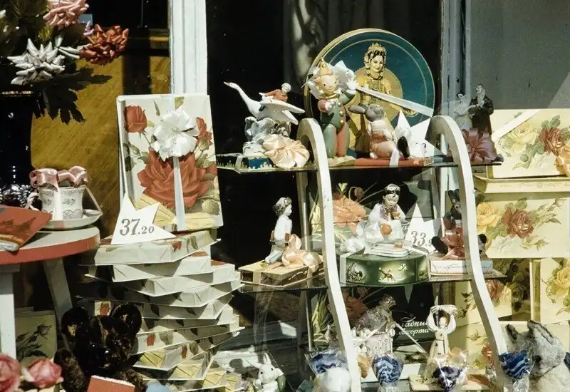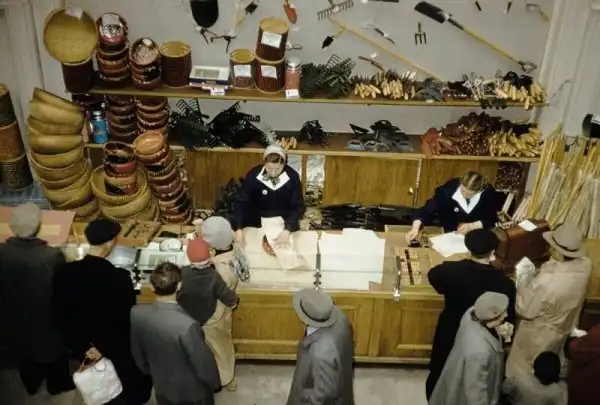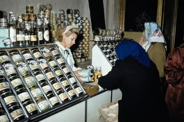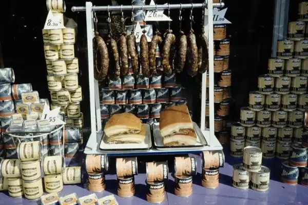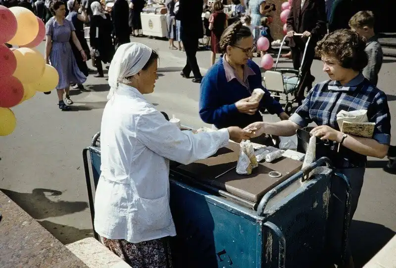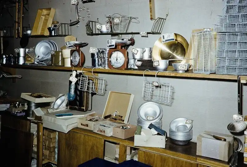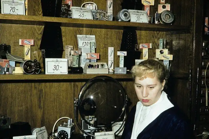 Серия фотографий товаров и цен в московских магазинах и уличная торговля в 1959 году.