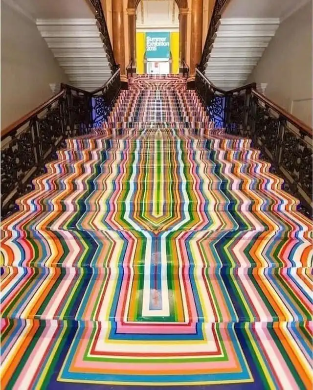 А если смотреть сверху, то ступеньки, скорее всего, будет вообще очень трудно различить из-за цветных полосок.