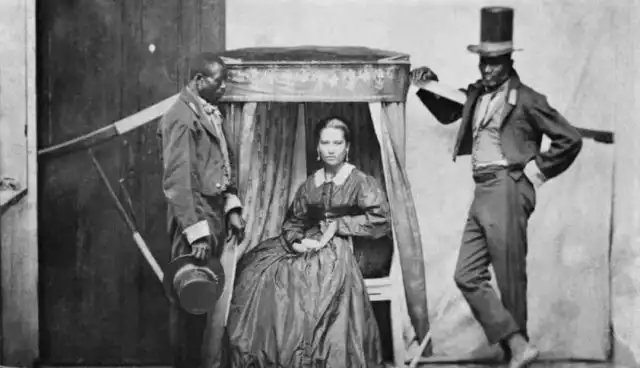 Женщина на носилках с двумя рабами. Бразилия, 1860-е года