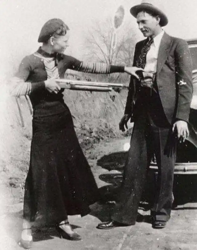 Знаменитые американские преступники, грабители банков – Бонни и Клайд, 1933 год.