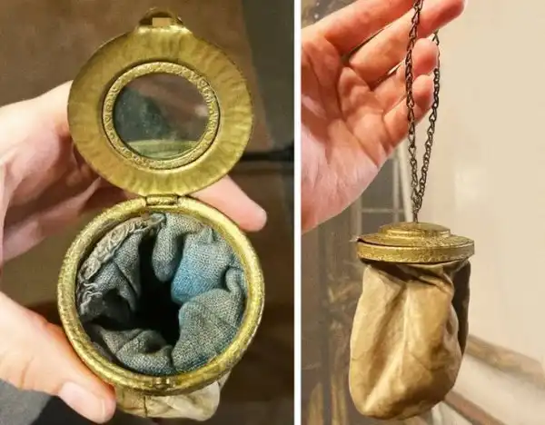 Ответ: Это женский ридикюль (крошечная сумочка, популярная в XIX — начале XX века).