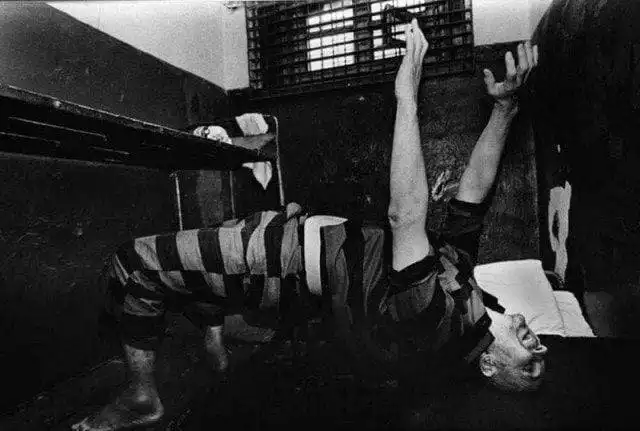 Андрей Чикатило перед расстрелом в камере занимается йогой, 1993г.