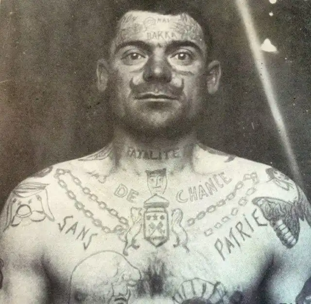 Заключенный французской тюрьмы, 1900-е. Усы татуировались в знак протеста против администрации.