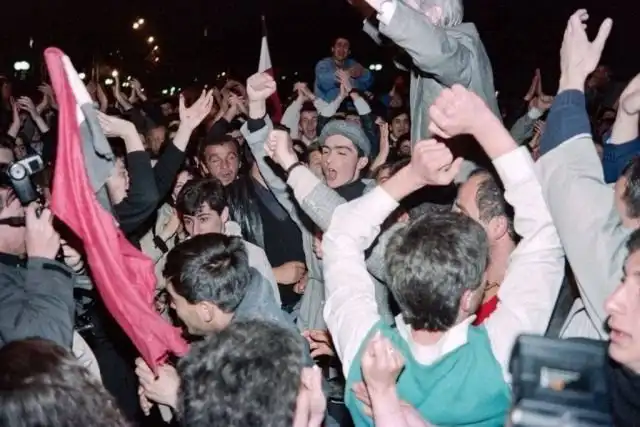 Грузины празднуют провозглашение независимости, 9 апреля 1991 г.