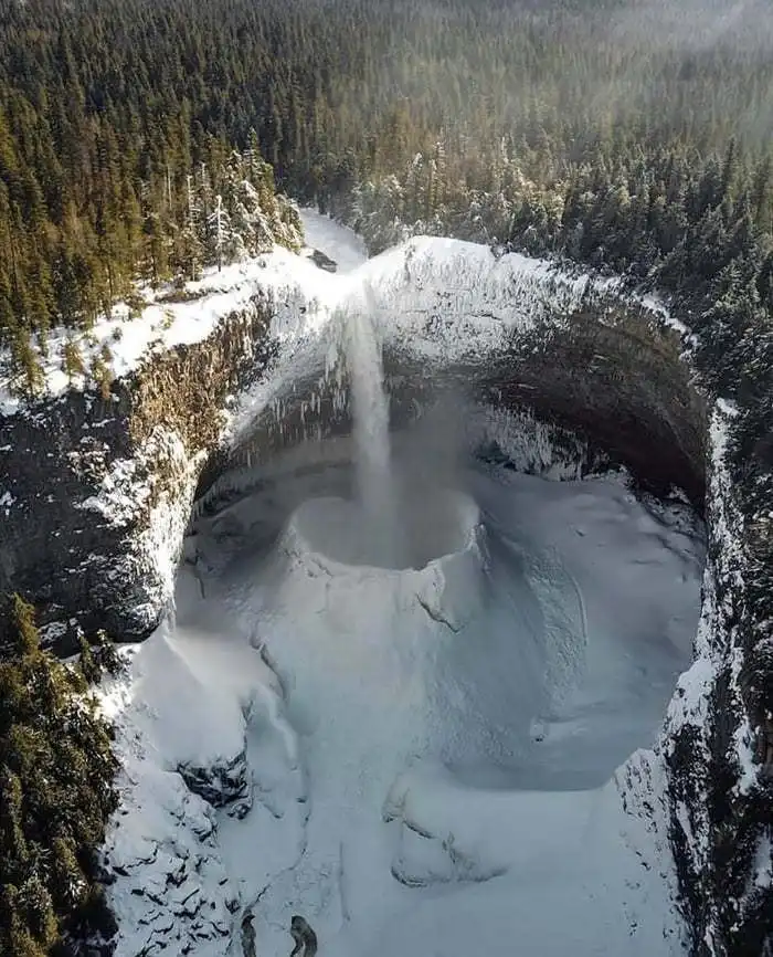 Замерзшая вода образует ледяную корону в Канадском водопаде Хелмкен
