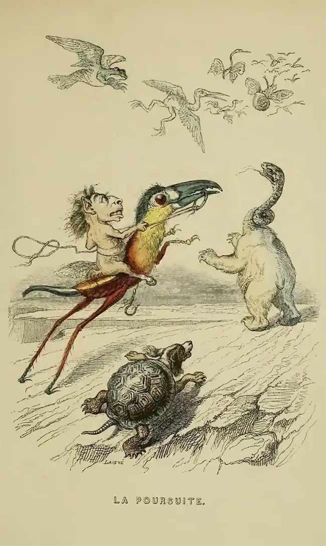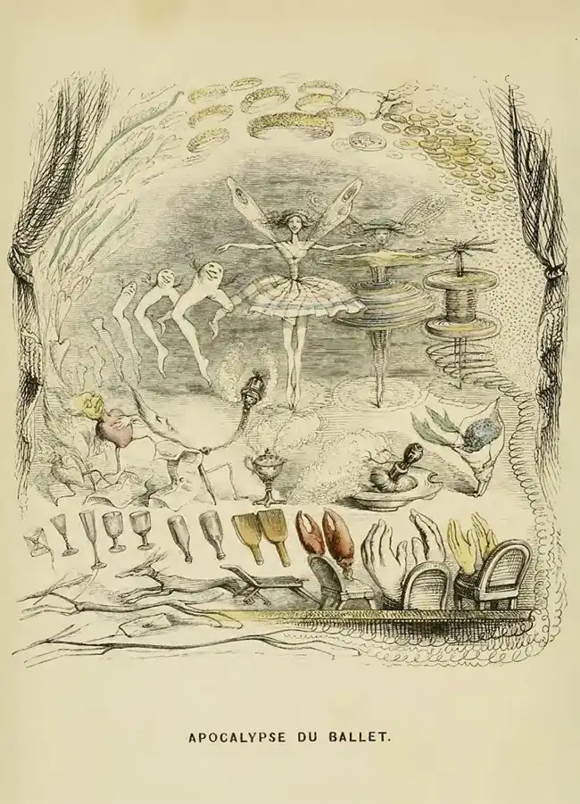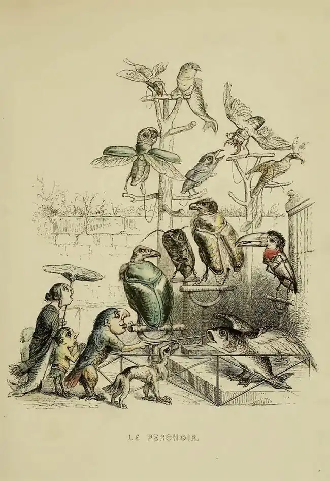 Французский художник-иллюстратор начала XIХ века Жан-Жак Гранвилль, урожденный Жан Игнас Исидор Жерар, прославился своими карикатурами и иллюстрациями - сложными, наполненными абсурдными фигурами и столь же абсурдными по смыслу. Его рисунки цепляют глаз, привлекаятщательно выписанными абсурдными подробностями.