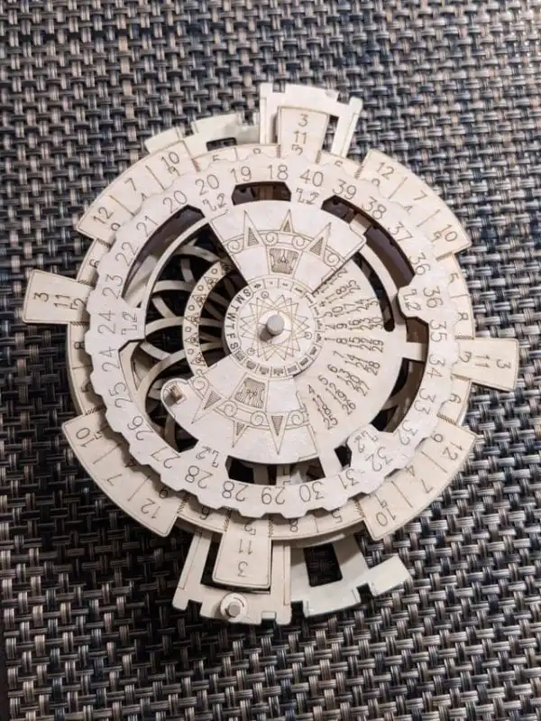 Ответ: Это вечный календарь, который вырезается с помощью лазера и собирается самостоятельно. Что-то вроде модельки.