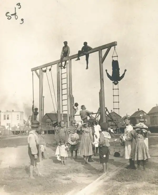 Крайне небезопасная на вид детская площадка, Чикаго, 1903 год