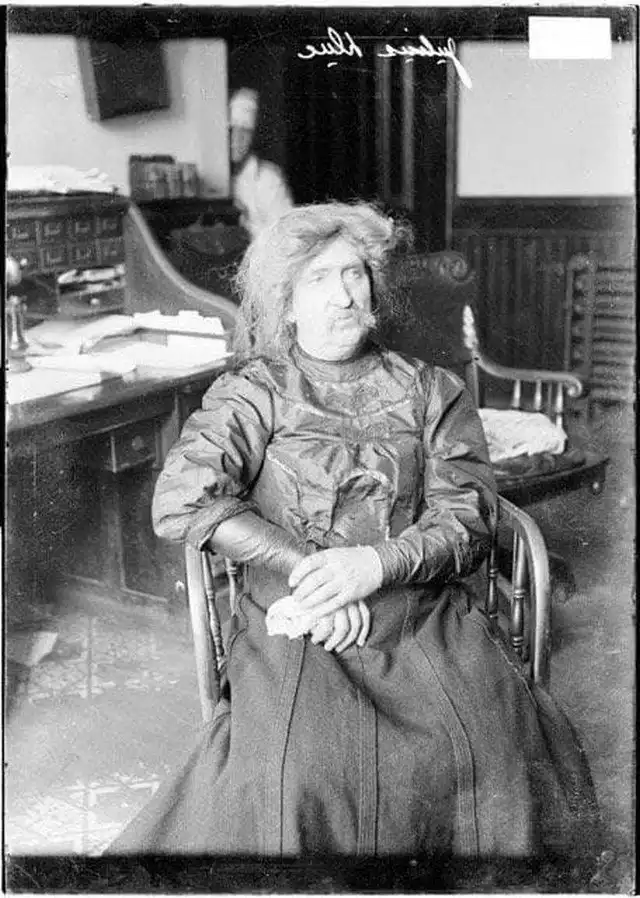 Преступник, переодевшись в женщину, скрывался от полиции. Юлиус Дак в полицейском участке Чикаго, 1906 г.