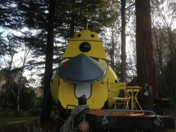 На сайте по аренде жилья по всему миру Airbnb есть одна интересная находка. Это "желтая подводная лодка", вдохновленная песней группы "The Beatles" под названием Yellow Submarine 1966 года. Это необычное жилье находится в лесах Новой Зеландии - его построил бывший местный радиотехник Кейт Ловелок, которого прозвали безумным ученым.