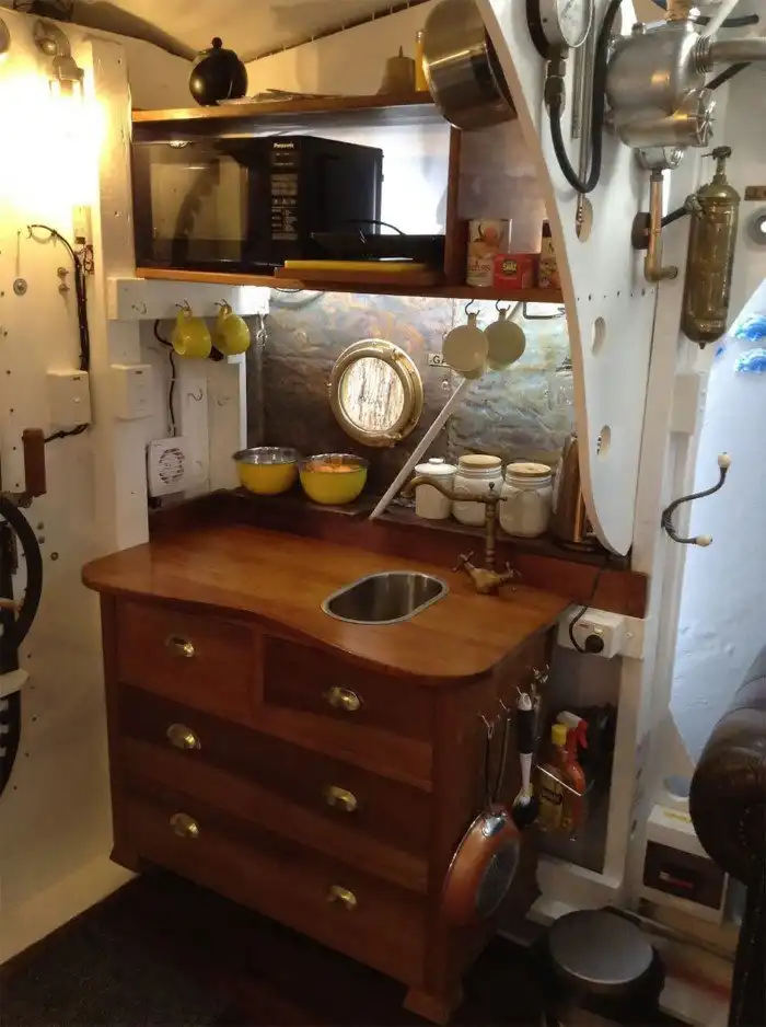 "Безумный ученый" вместе с женой целый год трудились над созданием этого творения. После того, как супруги начали сдавать лодку в аренду для проживания, не было отбоя от желающих остановиться в ней. Кухня, пара кают, ванная комната, мебель - здесь есть все для проживания. Ночь в таком домике обойдется в 9 тысяч рублей в сутки. А вы бы остановились в такой?