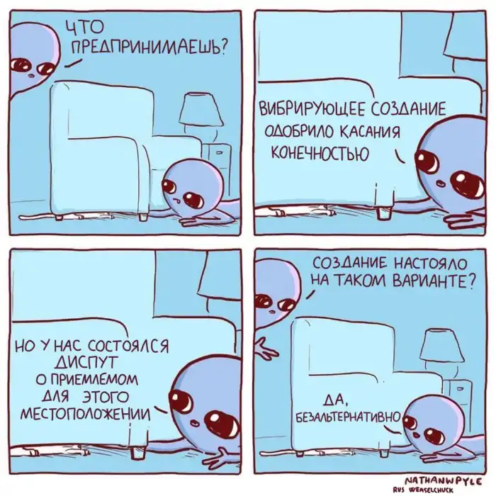 Предлагаю подборку комиксов о маленьких голубых инопланетянах, которые пытаются жить как люди.