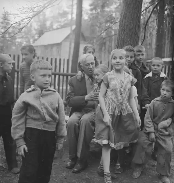 Писатель Корней Иванович Чуковский на своей даче в Переделкино. Московская область. Июль 1958-го