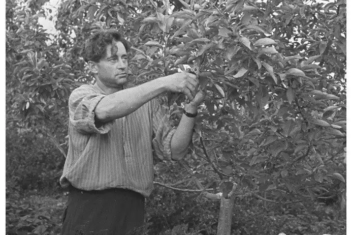 Председатель садово-огородной комиссии коллектива любителей-садоводов Московского станкостроительного завода им. С. Орджоникидзе, механик Владимир Савин на своем участке. Московская область. Поселок Щербинка. Июль 1957-го