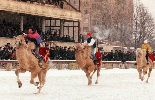 Верблюжьи бега на ипподроме, Москва, 2000 год.