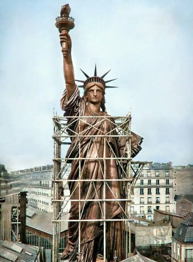 Так выглядела Статуя свободы в Париже в 1886 г., до ее перевоза в США и покрытия зеленой патиной от окисления.