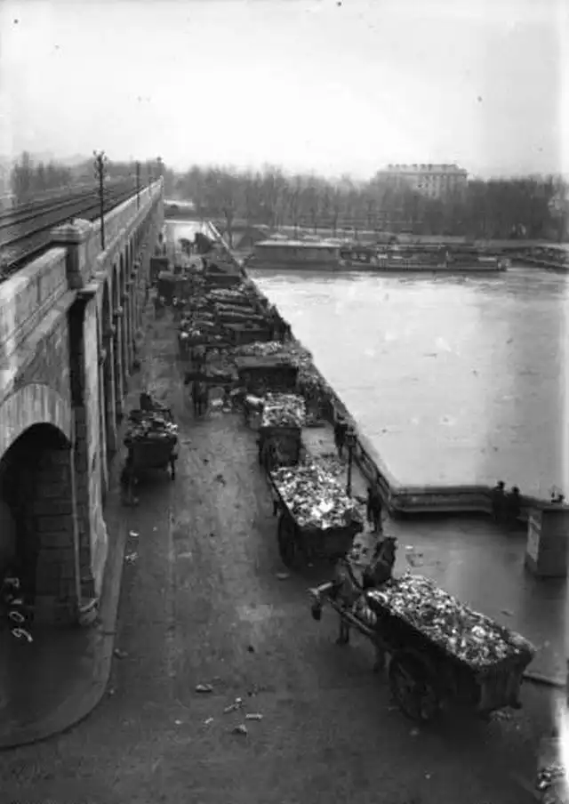 Сброс городского мусора в реку Сену, Париж, 1910 г.