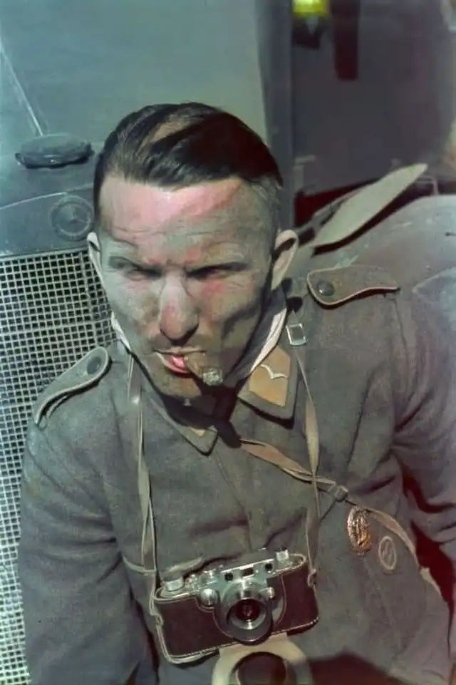 Военный фотокорреспондент люфтваффе Отто Фит (Otto Vieth) во время наступления на Сталинград. 1942 год.