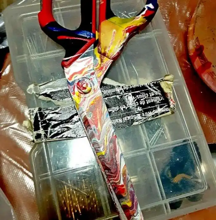 «Забыла ножницы на столе, где с увлечением занималась заливкой акрилом, и теперь у меня появилась новая идея для творческого воплощения»