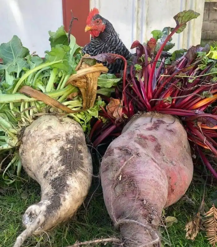 «Забыла про свеклу, и она случайно перезимовала в земле. Курица для сравнения»