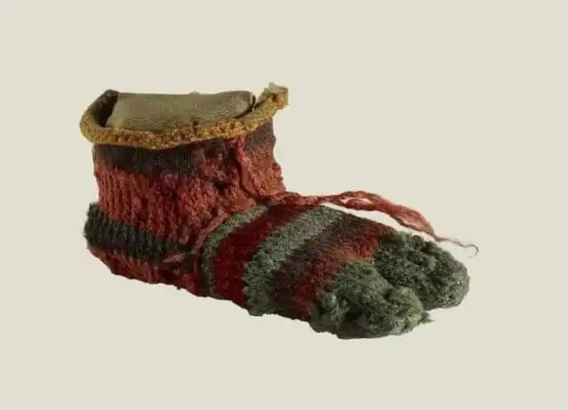 Римский детский носок 2000-летнего возраста. Цвета остались нетронутыми. Британский музей