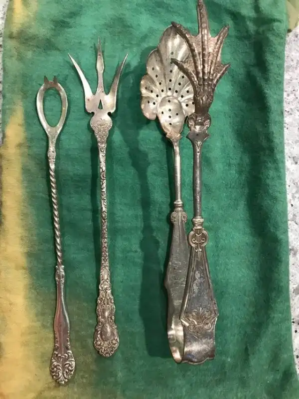 Ответ: Слева ложка для оливок, посередине вилка для лимона, а прибор с куриной лапой — это щипцы для льда.