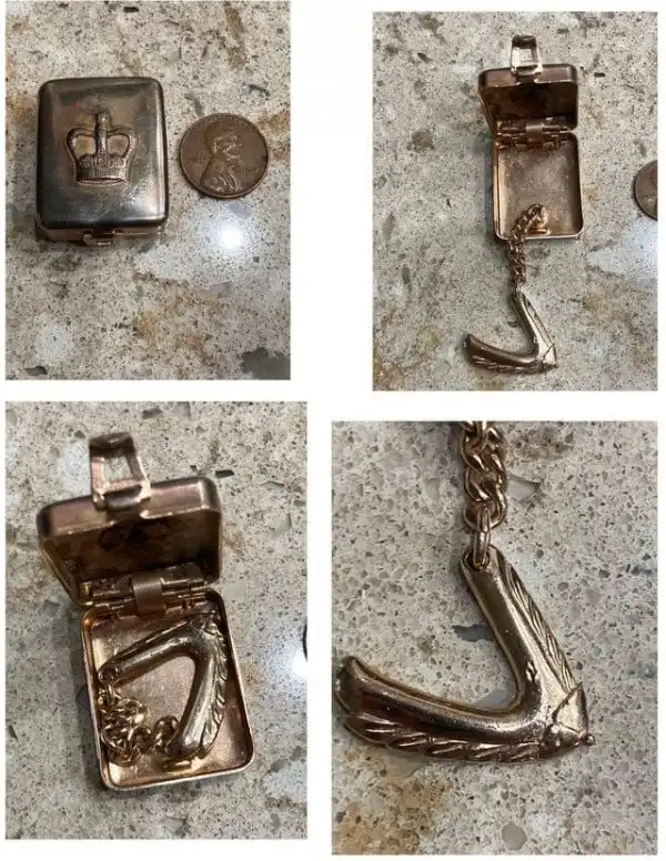 Необычная маленькая серебряная шкатулка с крылышком на цепочке внутри