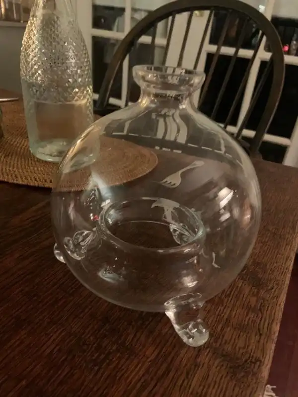 Найден при уборке поместья. На первый взгляд кажется, что это для хранения жидкости, но на дне есть большое отверстие