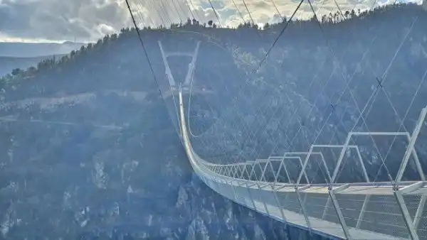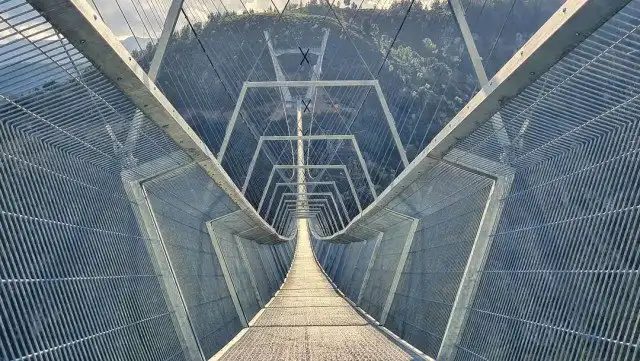 В Португалии в начале мая открыли мост Арока — это самый длинный подвесной пешеходный мост. Он проложен на высоте 176 метров над рекой Пайва, длина моста составляет 516 метров. Предыдущий рекордсмен — швейцарский мост имени Чарльза Куонена: он короче на 22 метра и располагается почти вдвое ниже.