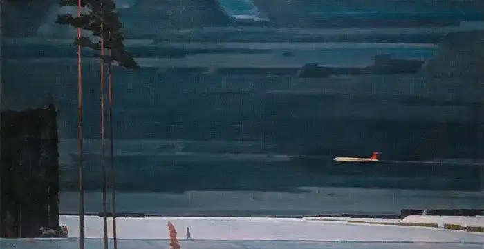 И именно ему принадлежит одна из главных эмблематичных работ этого периода «Политзанятия на линкоре» из собрания Государственного музейно-выставочного центра «РОСИЗО».