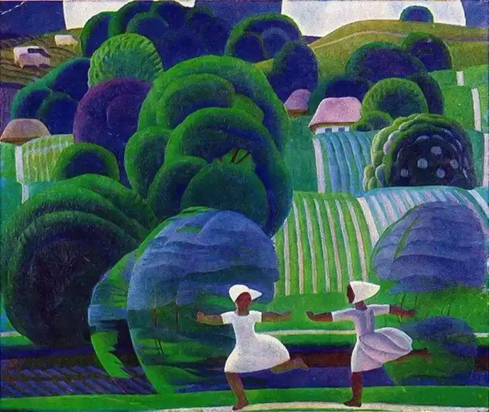 Он несколько раз менял стиль, от многослойной почти монохромной живописи до собственного варианта примитивизма с мастерским цветом и композицией.
