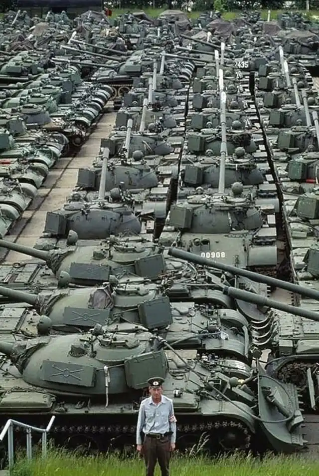 Танки Т-55 народной национальной армии ГДР оставленные на хранение после падения Берлинской стены, город Брауцен, 1991 год.