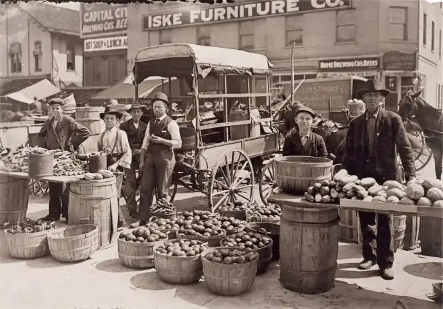 Уличный рынок в восточном районе Индианаполиса. Август 1908 года.