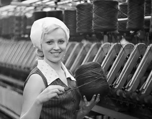 На фото крутильщица В. Пишкова со "Знаком качества". Ткацкая фабрика "Красный Октябрь", Ленинград, 1976 год /Фотохроника ТАСС/В.Червяков