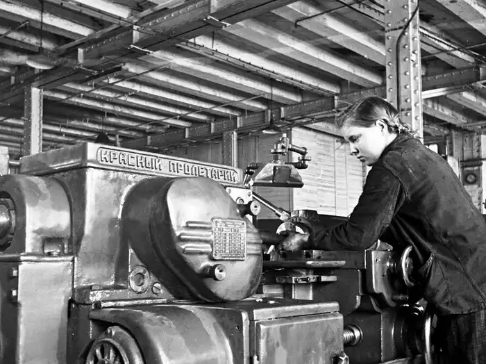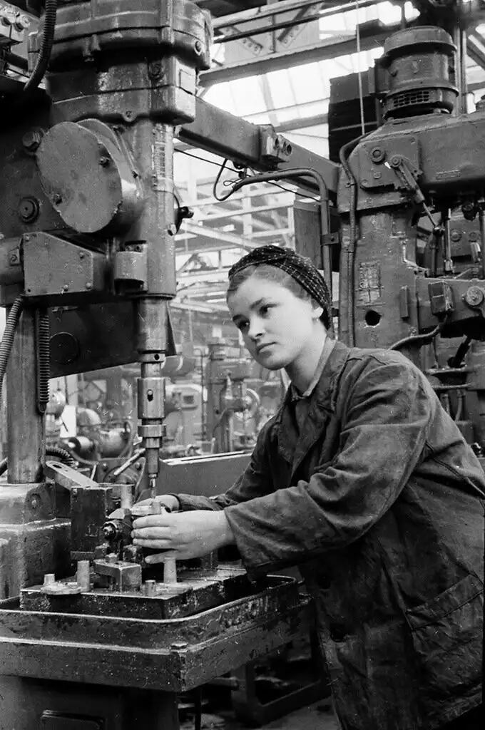 Глядя на этот снимок, вспоминаешь фильм "Москва слезам не верит", как главная героиня Катерина, устав ждать наладчика станков, сама освоила это нехитрое дело.