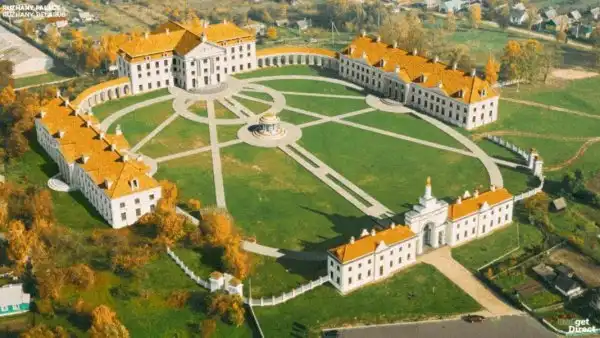 В этом величественном комплексе зданий находились библиотека, картинная галерея и даже театр. Дворец был частично разрушен во время Первой мировой войны, а после Второй мировой от него остались только главный и восточный корпуса, въездная брама и флигели.