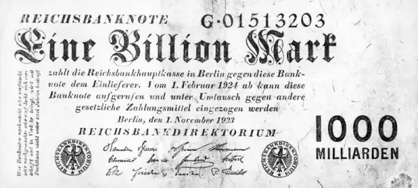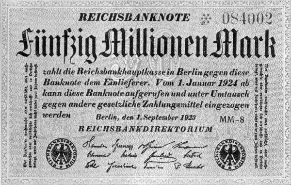 100 млрд марок 1923 года. За несколько дней и эта банкнота обесценилась в тысячу раз.