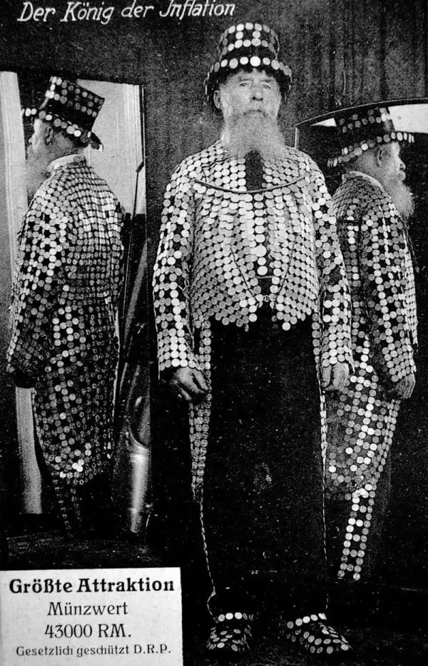«Король инфляции», человек в ничего не стоящих монетах, 1923 год