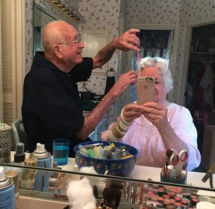 «Бабуля повредила запястье, и дедушка помогает ей с прической»