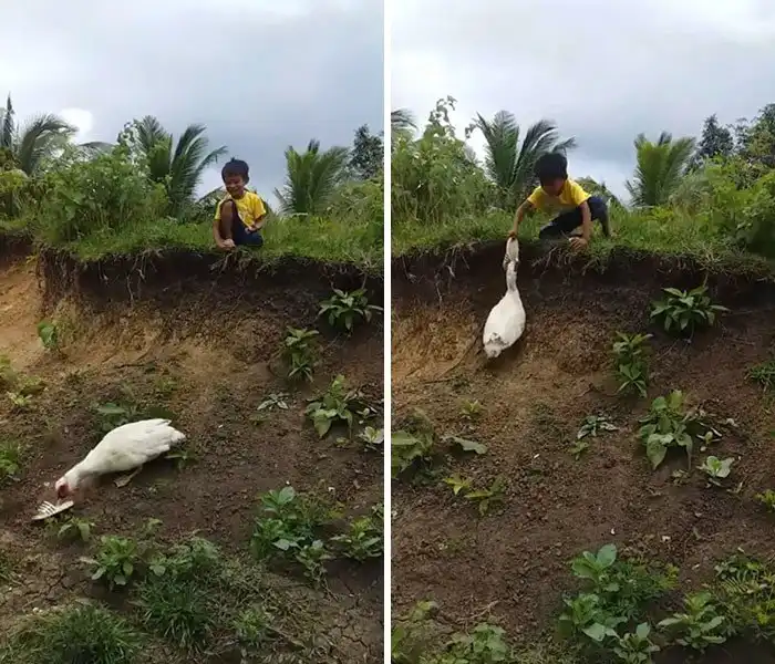 11. Добрая утка принесла мальчику его шлепанец, который тот уронил с холма