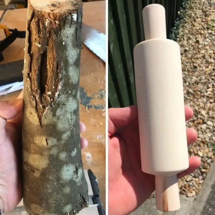 Сделал из обычного брёвнышка маленькую скалку для своей дочери, которая любит делать вид, что готовит