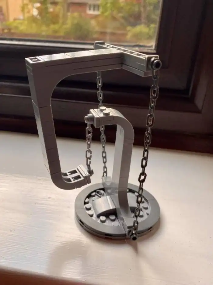 25. Башня, построенная по принципу "тенсегрити" (самонапряженная конструкция) из ЛЕГО; верхняя часть держится только на цепях