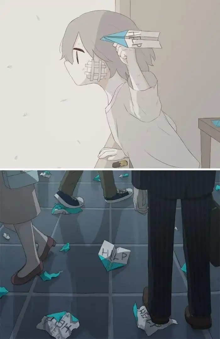 Японский иллюстратор, известный как Avogado6, использует язык, который все понимают, и это при том, что это вообще не язык. Вероятно, это связано с тем, что тонкие темы и сложные эмоции, которые он передаёт, слишком сложно описать словами, именно поэтому художник выбирает заставляющие задуматься визуальные истории, которые создаёт в своем уникальном стиле. Большинство его иллюстраций похожи на пилюли, каждая из которых содержит недостатки нашего общества и психические проблемы. И стоит признать, некоторые из них действительно тяжело проглотить. Его наполненные эмоциями, мрачные и тревожные иллюстрации говорят о вещах, с которыми, как нам кажется, вряд ли бы кто-то хотел связываться; тем не менее, это довольно точное, но захватывающее отображение глубин нашего мира.