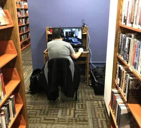 Парень носит с собой ПК в библиотеку, чтобы спокойно поиграть