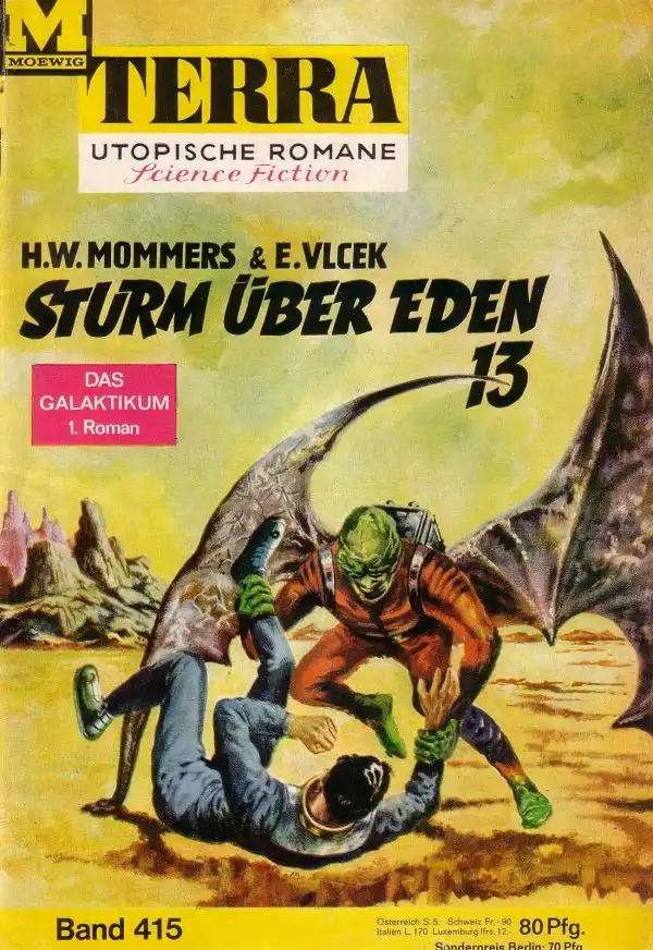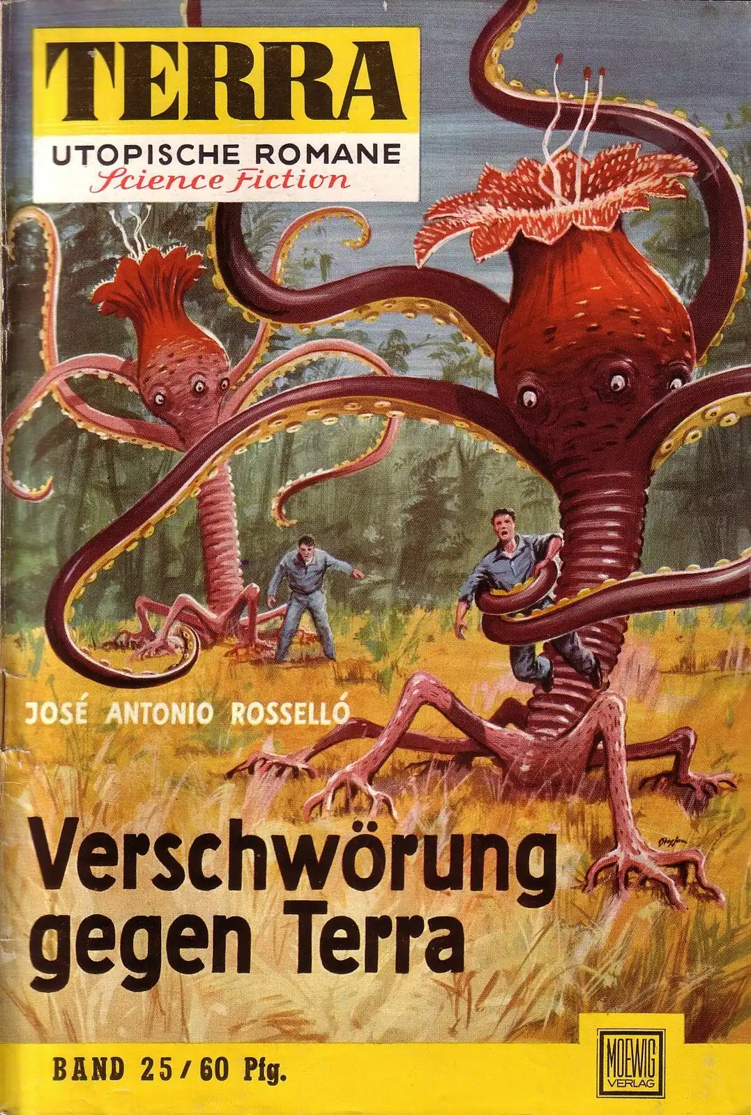 Terra или Terra—Utopische Romane дебютировал в 1957 году и публиковался еженедельно Артуром Моэвигом Верлагом вплоть до 1968 года. Вместе с конкурирующим научно-фантастическим журналом Utopia, Terra называют «самым важным научно-фантастическим трудом в первые годы Западной Германии». И достаточно одного взгляда на великолепные обложки журнала, чтобы в этом убедиться. Только взгляните на этих сказочных инопланетных мутантов, сражающихся с бравыми космонавтами с волевыми подбородками, или на роботов-убийц, готовых прикончить какого-нибудь несчастного, или хищных монстров, готовых угоститься космонавтами на полдник. Это прекрасные, вдохновляющие мини-шедевры, благодаря которым люди в то нелегкое время поняли, что на Земле еще относительно безопасно.