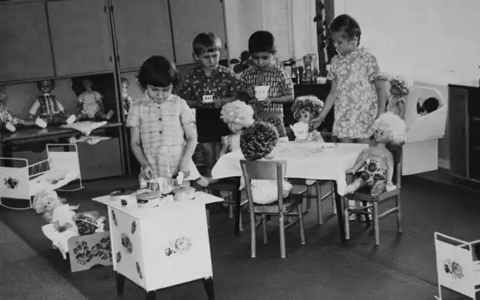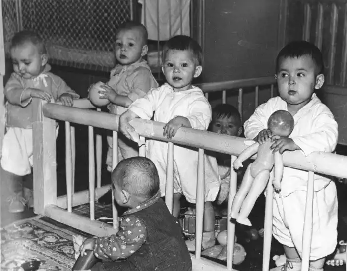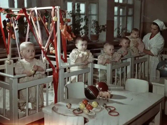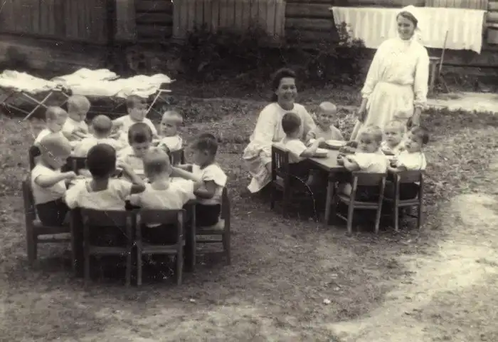 В ясли принимали детей с двухмесячного возраста (когда у мамы заканчивался оплачиваемый декретный отпуск) до 3 лет, в садик – с 3 до 7 лет. И только в 1959 году детские ясли и сады были объединены в одно учреждение