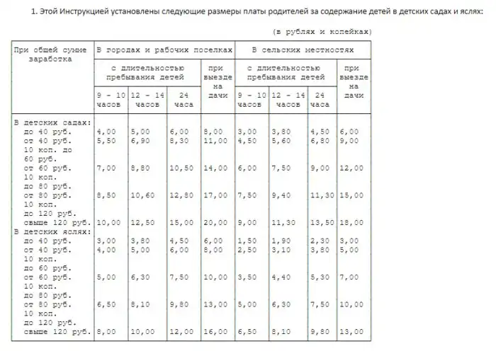 Плата за садик в 60-х годах. В 19666 она в среднем составляла 7 рублей, поднимаясь каждый год на несколько копеек. Малообеспеченные и многодетные семьи полностью освобождались от платы за детский сад.