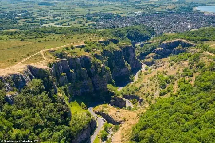 Ущелье находится недалеко от деревни Чеддер, Сомерсет, Англия. Скалы на 137 метров возвышаются над местной дорогой.