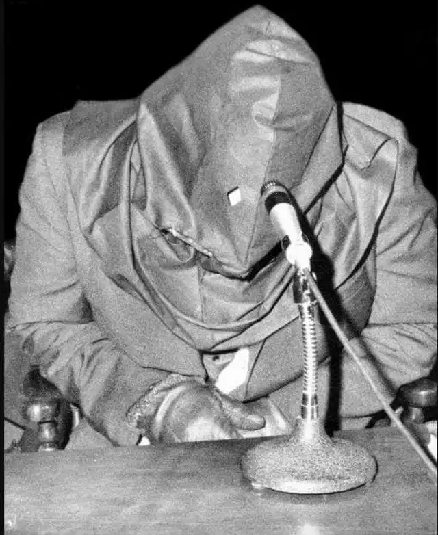 Свидетель, скрывающий лицо, дает показания против мафии, 1969 год.